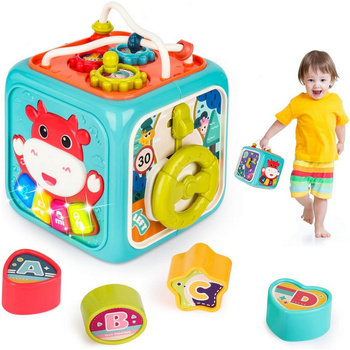 Kostka edukacyjna multikostka 6 w 1 zegar liczydło sorter kierownica sonsoryczna