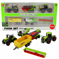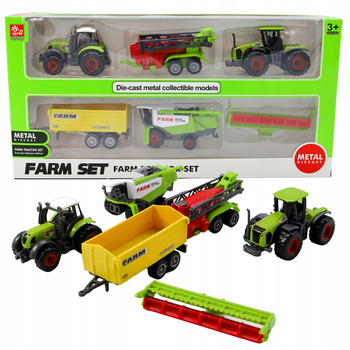 ( ilość produktów: 354 )Duży zestaw pojazdów ciągnik traktor maszyny rolnicze 6w1 zestaw farmera